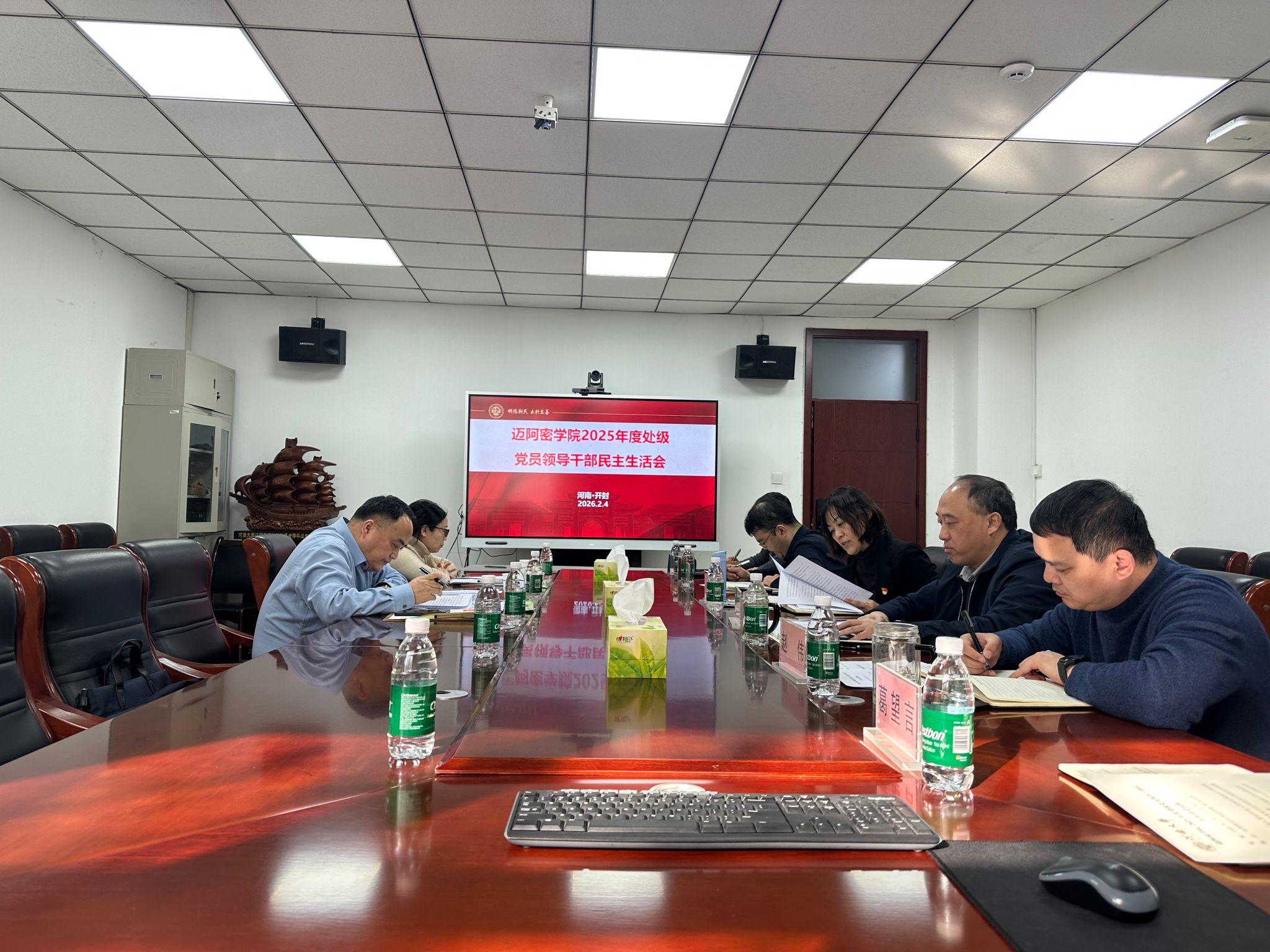 学院党委对本次民主生活会高度重视,按照学校纪委机关、学校党委组织部相关文件精神,制定《迈阿密学院2025年度处级党员领导干部民主生活会方案》,并于2026年1月23日召开党委理论学习中心组学习(扩大)会议,专题学习2025年第23期《求是》杂志发表的习近平总书记重要文章《推进党的自我革命要做到“五个进一步到位”》等相关内容,认真开展研讨交流。通过师生党支部等多个渠道广泛征集意见,深入开展谈心谈话,全面查摆存在问题,深刻剖析问题根源,从严从实撰写领导班子和个人对照检查材料,为会议顺利召开打下坚实基础。